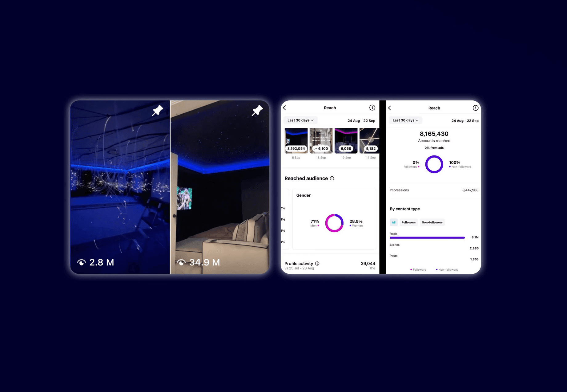 In just one month, I helped bring 8 million reach to Septa Design’s Instagram, powered by one video hitting 38.6 million views and two others reaching 1.5 million.